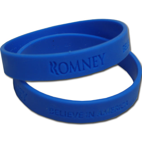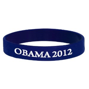 Un braccialetto di silicone con stampa per Obama, uno con incisione per Romney.
