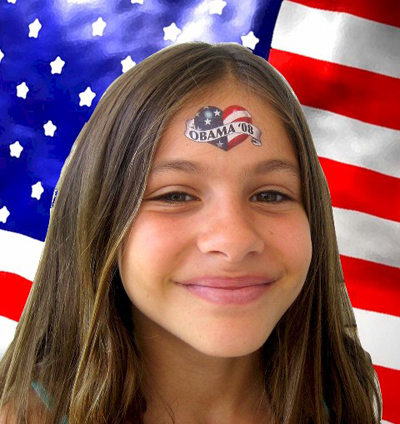 Per sostenere la loro campagna e fare in modo di coinvolgere la popolazione, i due candidati utilizzano anche gli oggetti pubblicitari.Tatuaggi temporanei Obama 2008