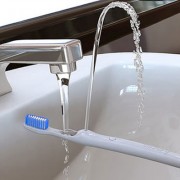 Orientate il getto d’acqua verso la vostra bocca e sorprendetevi del vostro sorriso abbagliante ! Non avrete più bisogno di torturarvi il collo nel tentativo di raggiungere il rubinetto (o di bagnarvi tutta la faccia, traumatizando il vostro corpo addormentato!). Lo spazzolino con la fontanella ha un altro vantaggio, non dovrete comprarvene uno nuovo ogni 3 mesi, basterà cambiare la testina e il gioco è fatto!